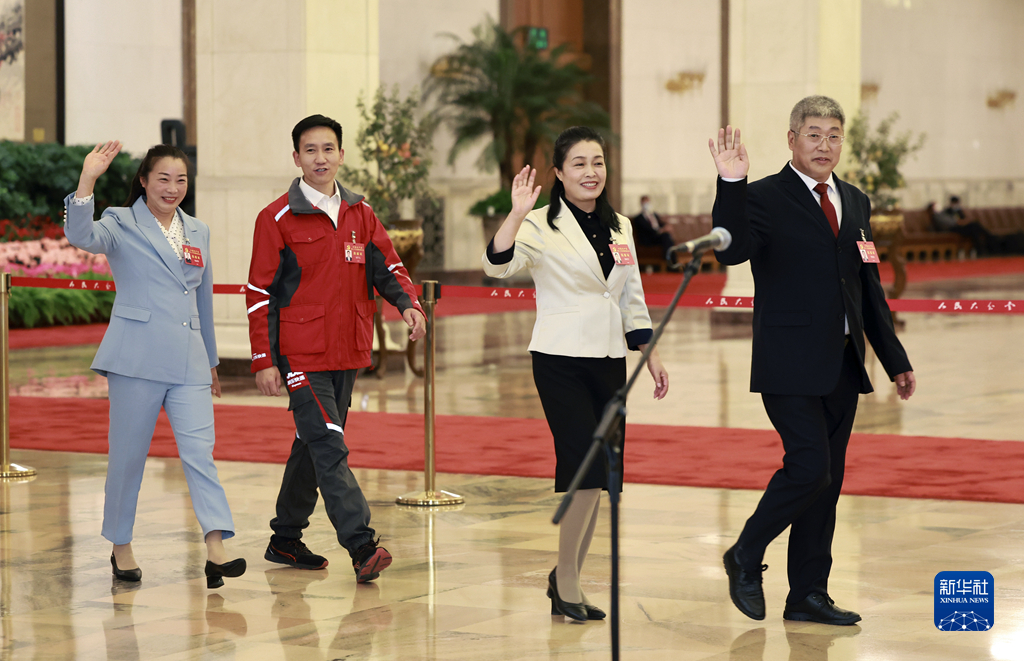 這是閉幕會后,楊彥鋒、宋學文、祁洪芳、李紹杰代表(自左至右)步入“代表通道”,準備接受采訪。