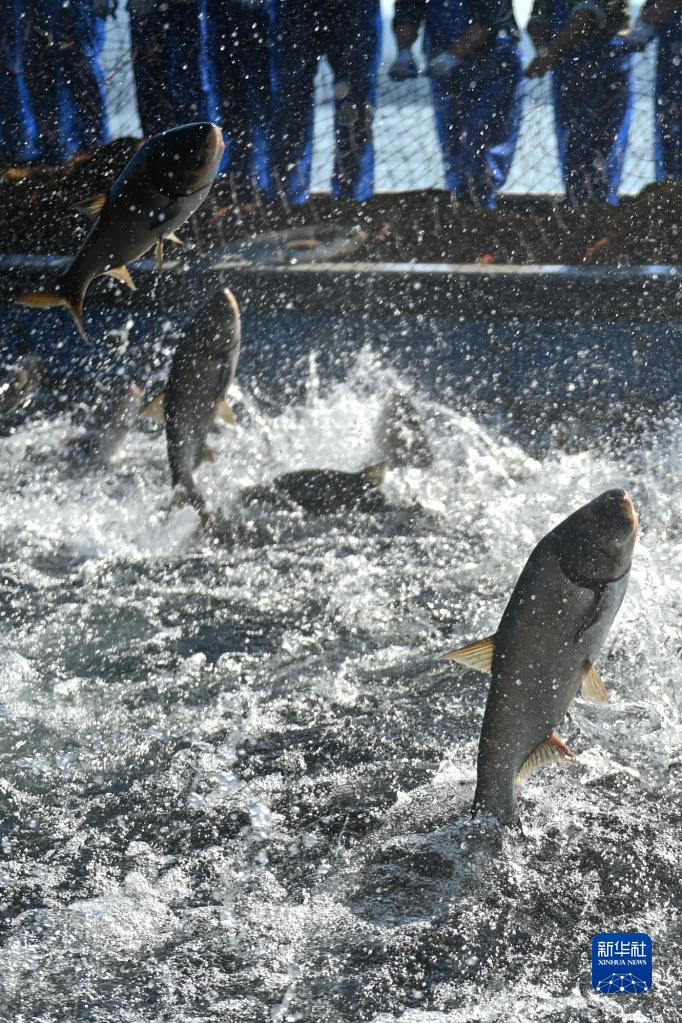 金秋時節,浙江省淳安縣千島湖黃山尖水域開展巨網捕魚,捕撈隊員合力拉網,捕獲12萬多斤鰱鳙魚,沸騰魚鄉迎來豐收季。