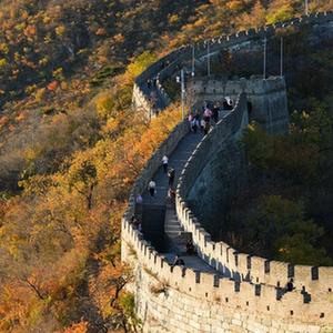 金秋時節,北京慕田峪長城景區內層林盡染,迷人景色吸引了不少游客。
