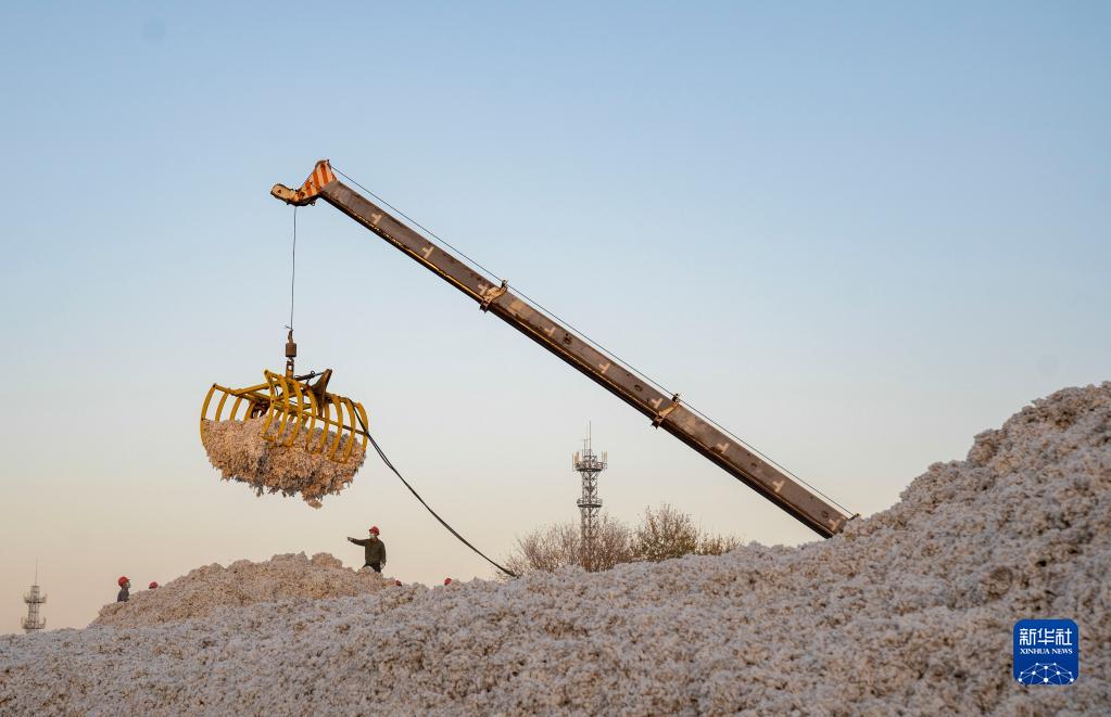 秋日,我國最大棉花生產基地新疆進入棉花大規模采收季,大型機械忙碌在天山南北的棉田之中。