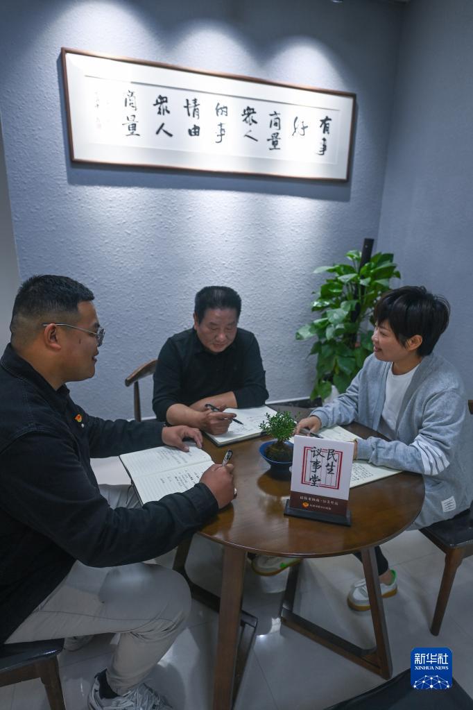 10月25日,杭州市臨安區玲瓏街道夏禹橋村民生議事堂的成員們在進行討論協商。