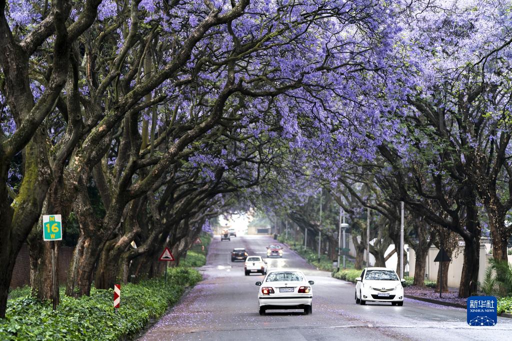 這是10月24日在南非約翰內斯堡拍攝的盛開的藍花楹。