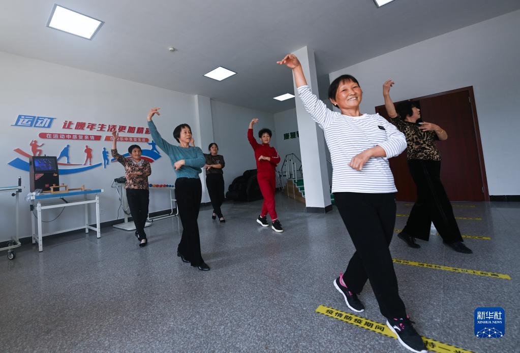10月25日,在杭州市臨安區昌化鎮居家養老服務中心,老人們參加舞蹈排練。