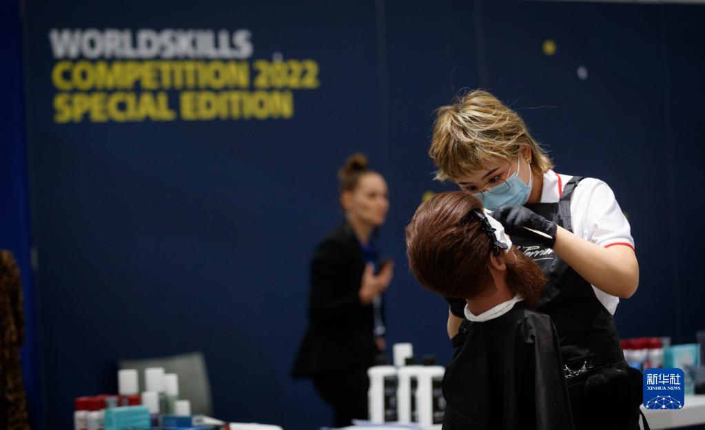 10月23日,獲得美發項目銀牌的杭州輕工技師學院沈文青在芬蘭首都赫爾辛基參加2022年世界技能大賽特別賽芬蘭賽區比賽。
