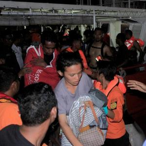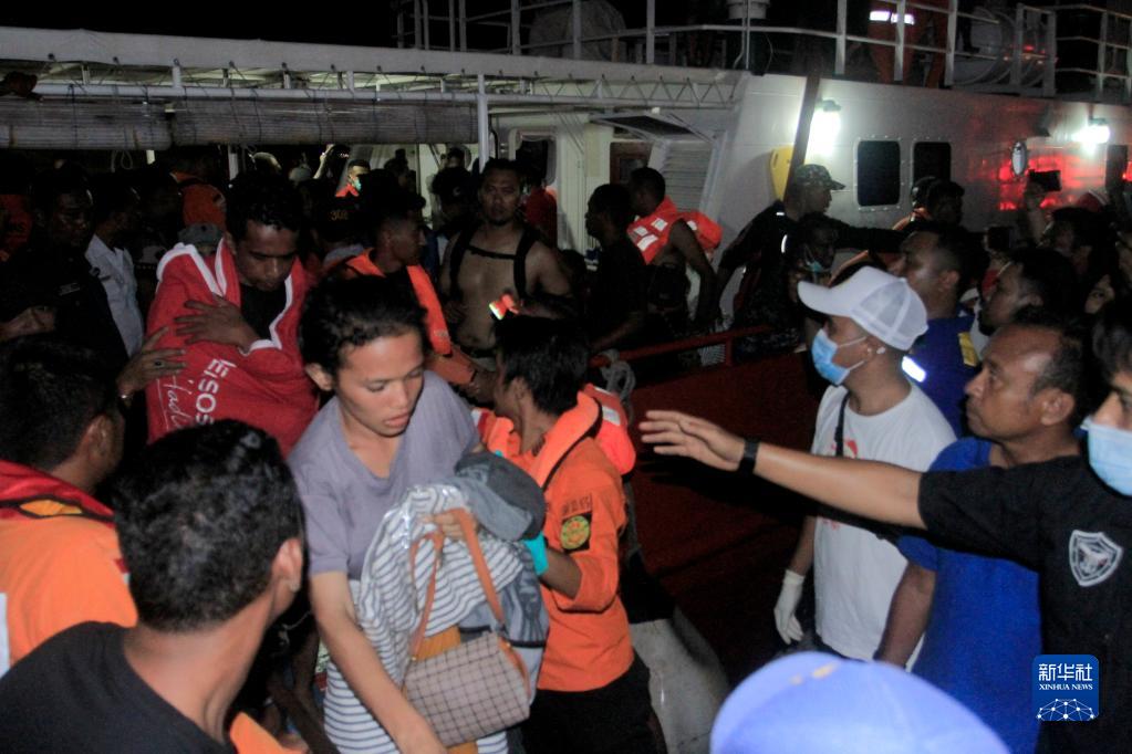 10月24日,救援人員在印度尼西亞東努沙登加拉省疏散客輪乘客。