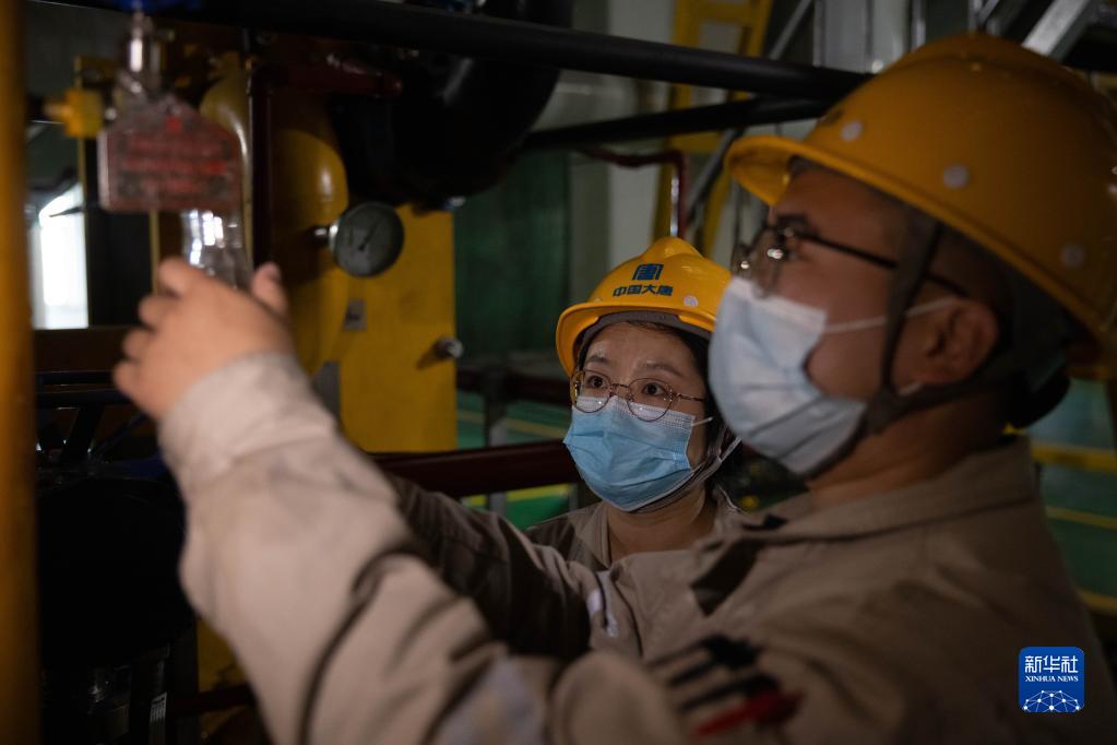 10月24日,在大唐綏化熱電有限公司供熱車間內,化驗員在進行油質采樣。