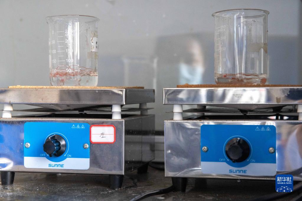 10月24日,在大唐綏化熱電有限公司發電部水油化驗班實驗室內,化驗員暴睿智在觀察水質樣品。
