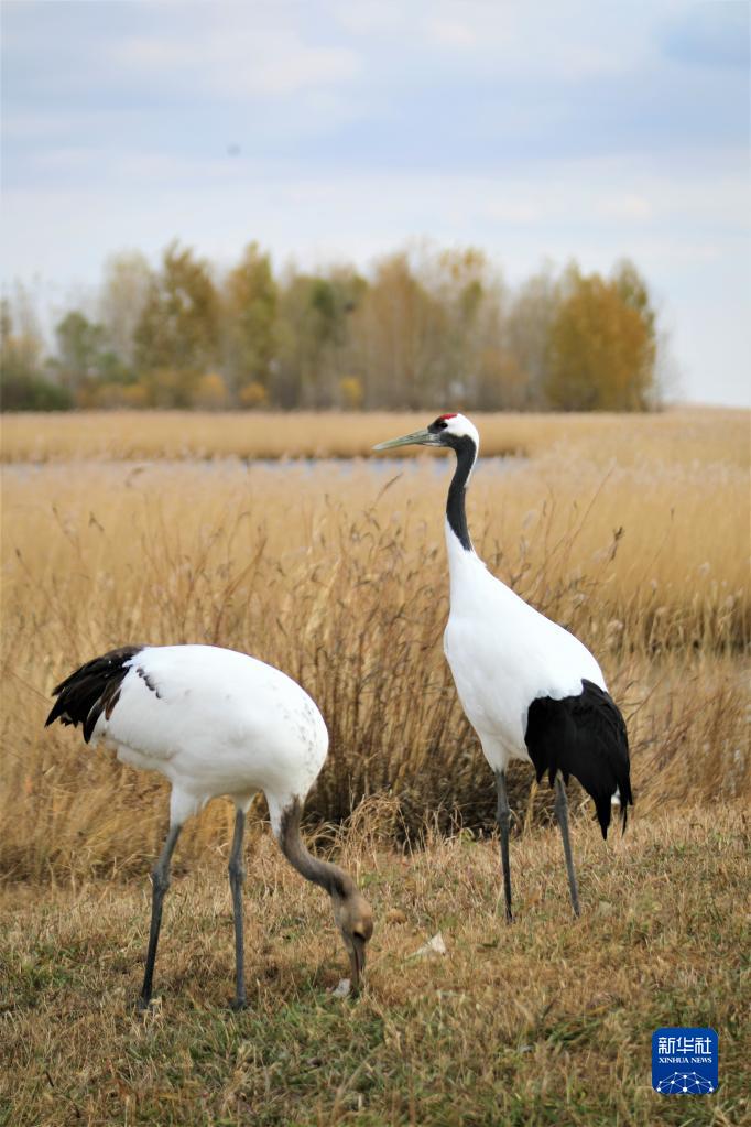 這是黑龍江扎龍國家級自然保護區的丹頂鶴(2022年10月21日攝)。 新華社發(宋燕軍 攝)