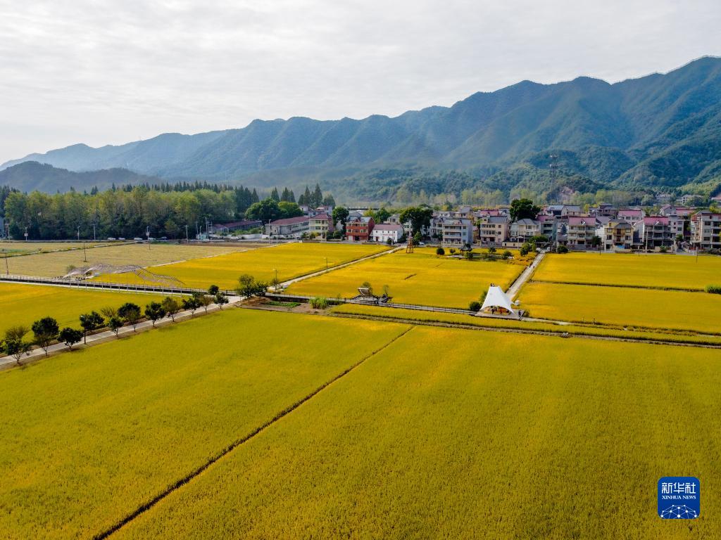 近日,浙江省杭州市桐廬縣的鄉村里稻田金黃、丹桂飄香,展現出美麗的金秋畫卷。