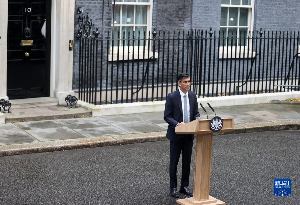 10月25日,里?!ぬK納克在英國倫敦唐寧街10號首相府前發表講話。