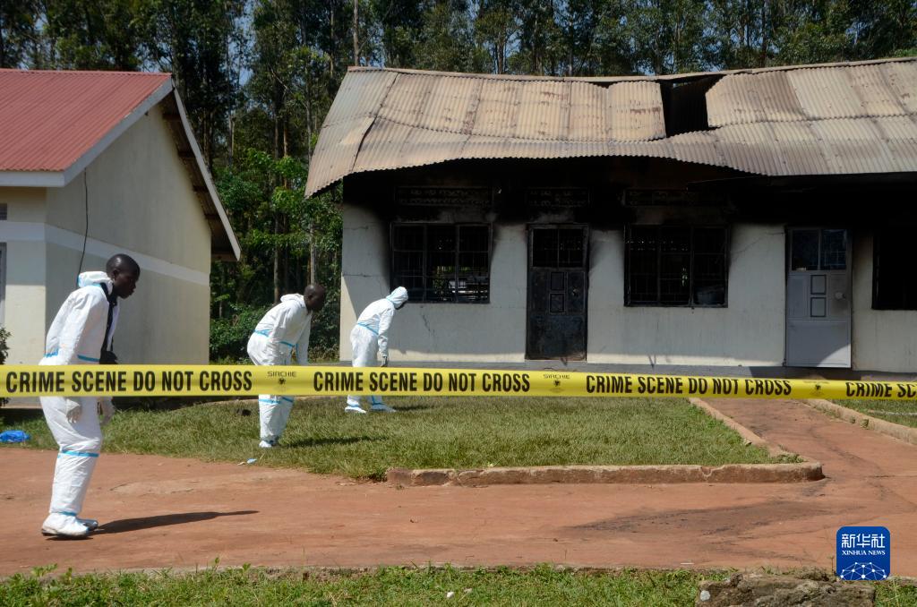 10月25日,在烏干達中部穆科諾地區一所盲人學校,工作人員在火災現場收集證據。