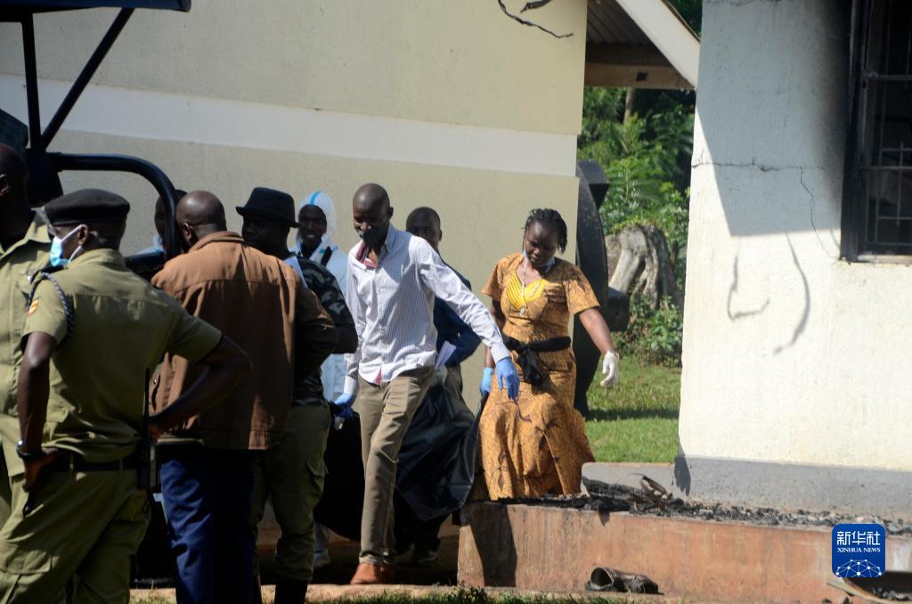 10月25日,在烏干達中部穆科諾地區一所盲人學校,人們轉移在火災中喪生的兒童遺體。