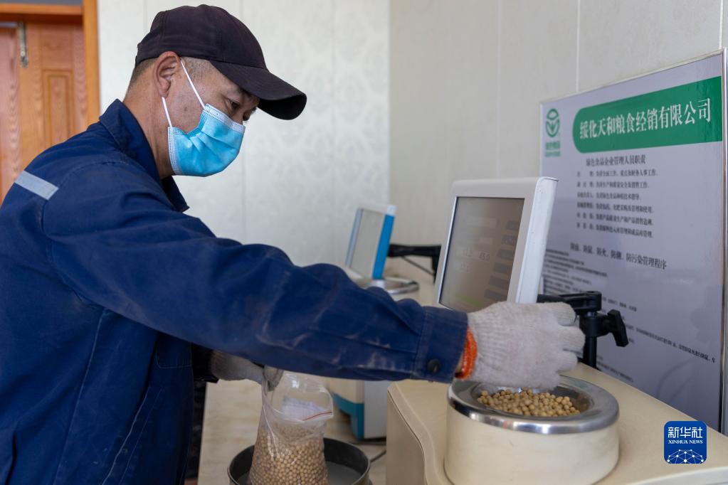 10月25日,檢驗員對大豆進行蛋白質含量檢測。
