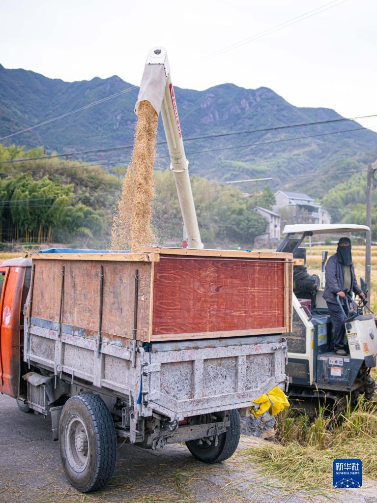 近日,浙江省建德市三都鎮新和村的數百畝水稻田進入收獲期。