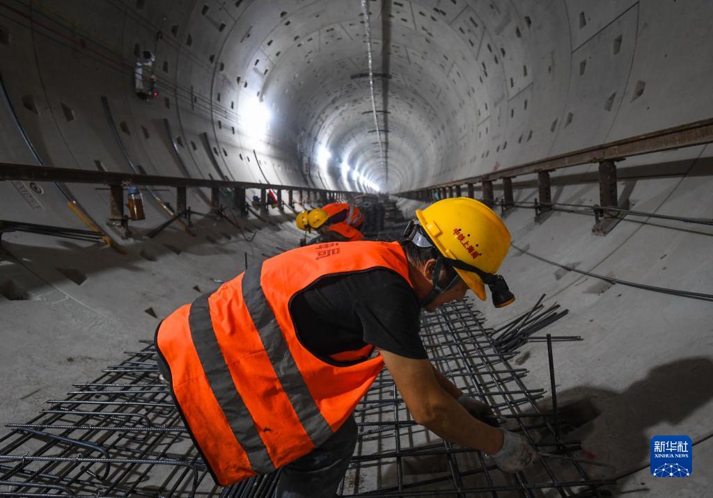 10月26日,施工人員在廣州地鐵11號線綁扎道床基底鋼筋。