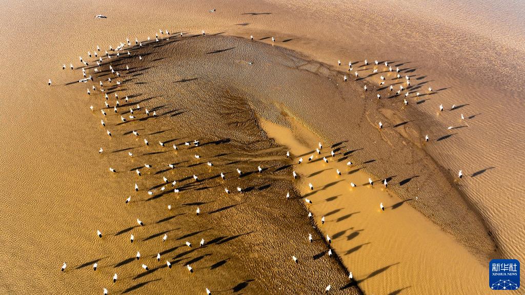 這是3月2日在山東黃河三角洲國家級自然保護區拍攝的東方白鸛(無人機照片)。