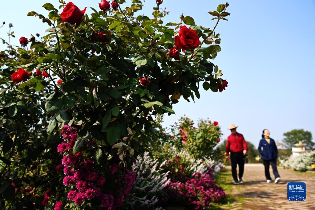 游客在西安市長安區太陽葡萄小鎮農業景區參觀(10月21日攝)。