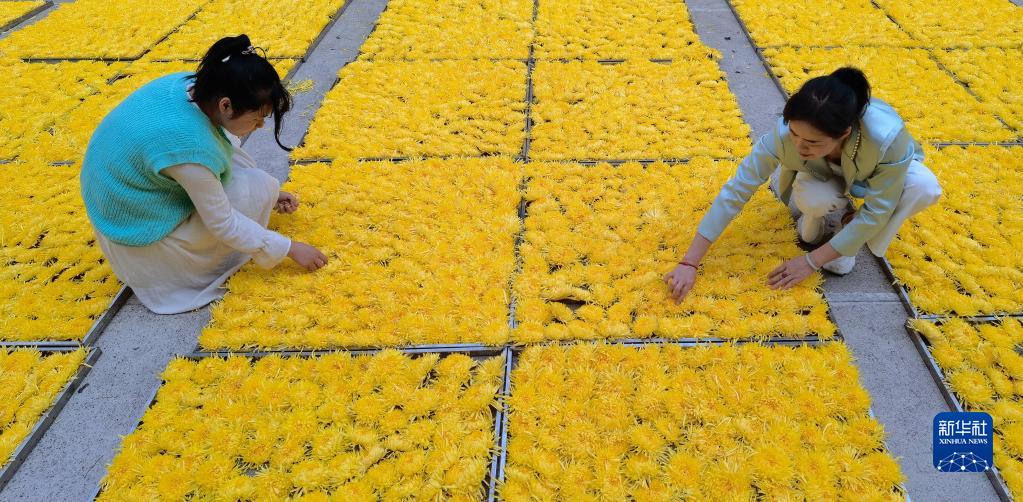 近日,湖南省衡陽市南岳區壽岳鄉岳林村種植的高山皇菊進入采收期,村民搶抓晴好天氣采摘菊花、加工菊花茶。當地依托高山林地特點,發展高山皇菊種植產業,推動農旅融合,助力鄉村振興。