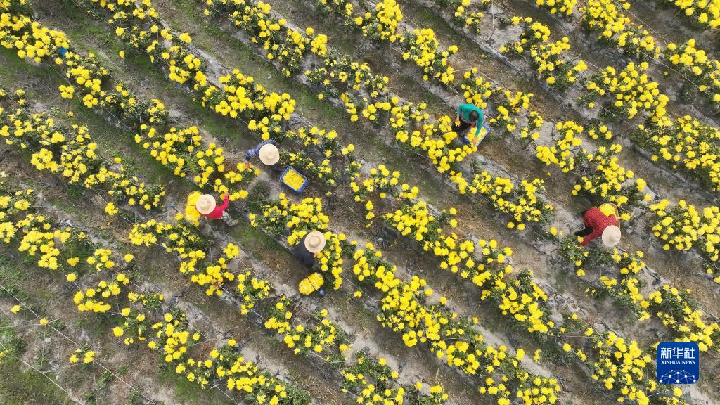 近日,湖南省衡陽市南岳區壽岳鄉岳林村種植的高山皇菊進入采收期,村民搶抓晴好天氣采摘菊花、加工菊花茶。當地依托高山林地特點,發展高山皇菊種植產業,推動農旅融合,助力鄉村振興。