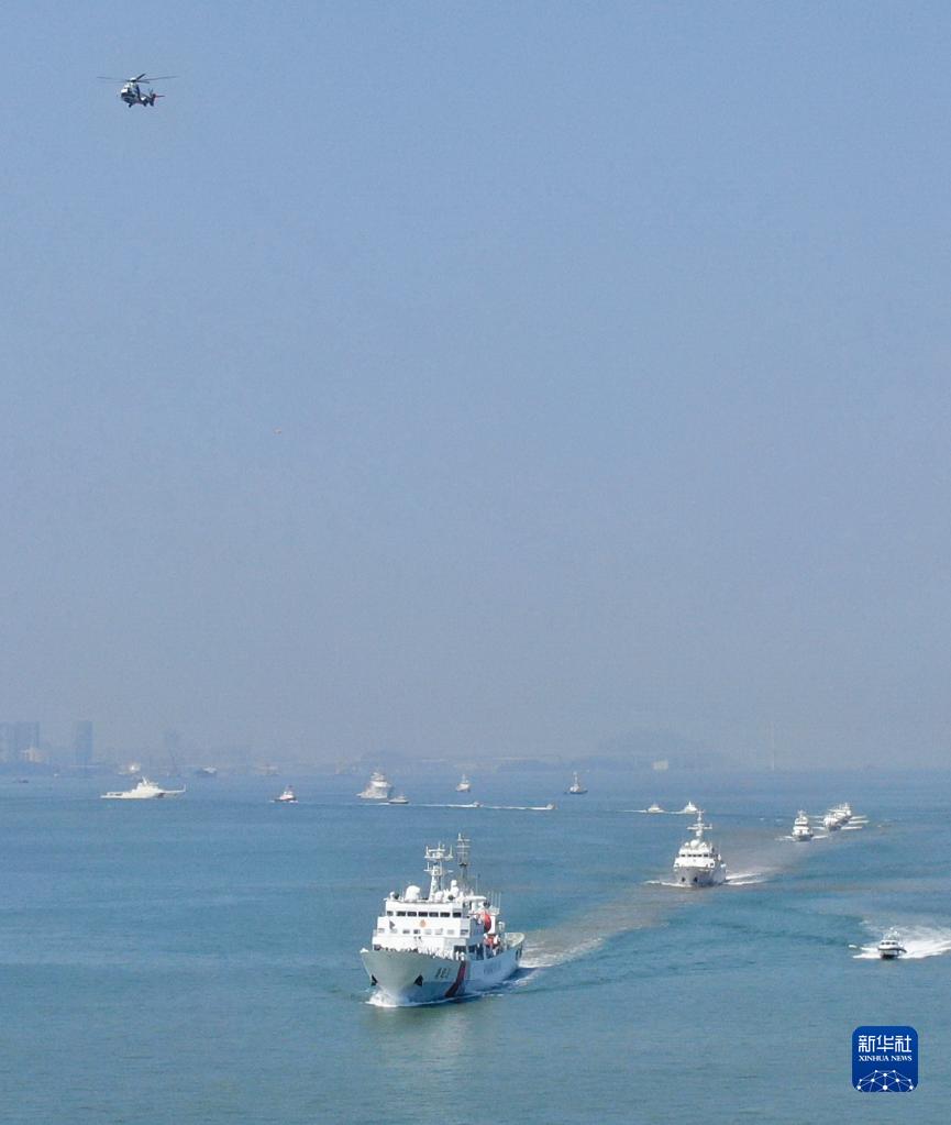 10月27日,參演搜救船只列隊行進(無人機照片)。