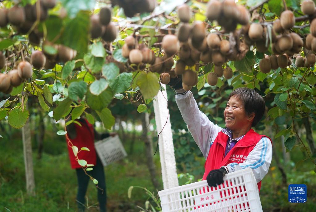 近日,江西省宜春市奉新縣的獼猴桃相繼成熟,果農采摘熟果,果園里一派繁忙景象。近年來,奉新縣大力發展獼猴桃種植,建立“公司+農戶”的生產經營模式,帶動群眾增收致富。目前,奉新縣獼猴桃栽培面積達9.5萬畝,從業農戶7000余戶。