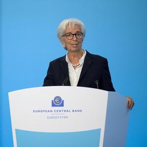 10月27日,在德國法蘭克福,歐洲中央銀行行長拉加德在歐洲央行總部舉行的新聞發布會上講話。