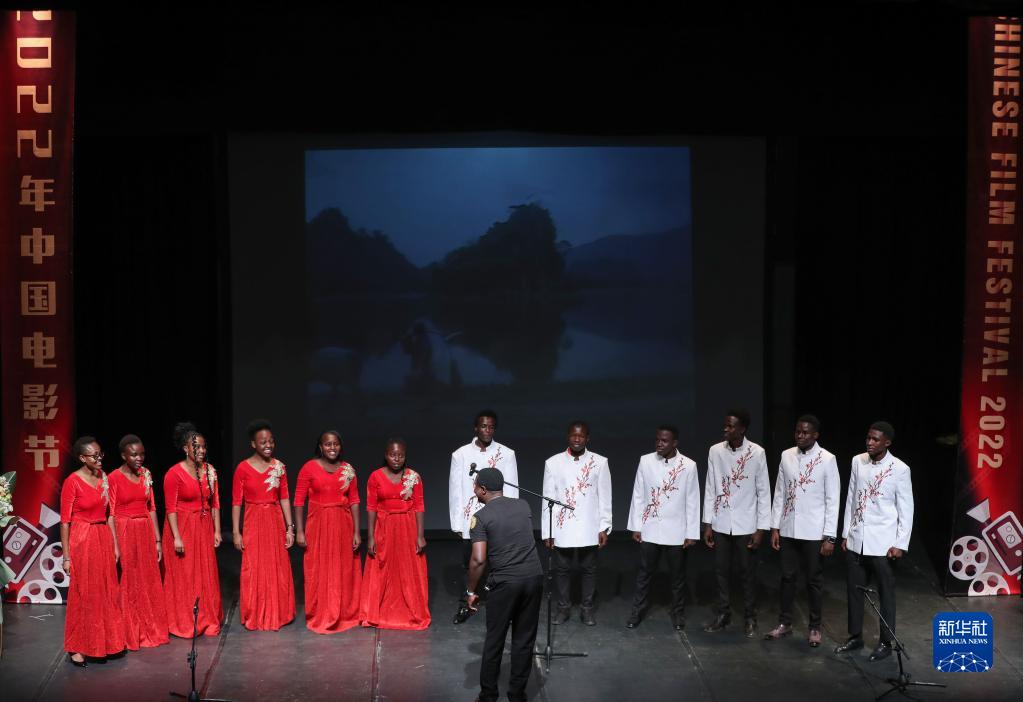 這是10月27日在肯尼亞內羅畢拍攝的中國電影節開幕式上的合唱表演。
