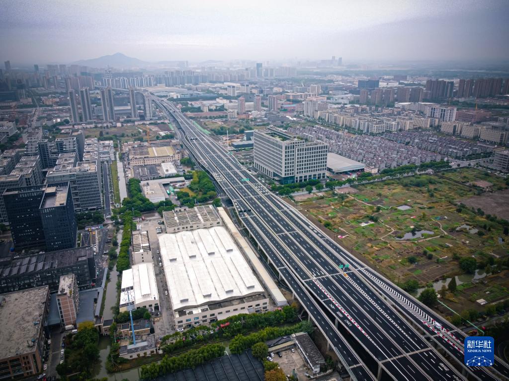 這是10月28日拍攝的杭州市臨平區320國道快速路二期(無人機照片)。