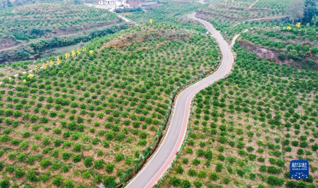 這是10月27日在重慶大足區金山鎮天河村拍攝的佛手種植基地(無人機照片)。