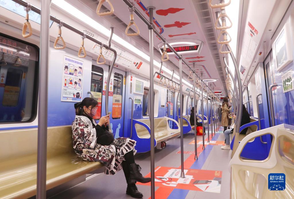 10月28日拍攝的運行中的上海消防119號地鐵主題列車內景。