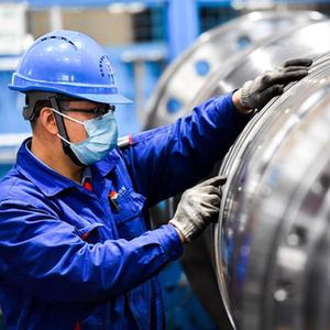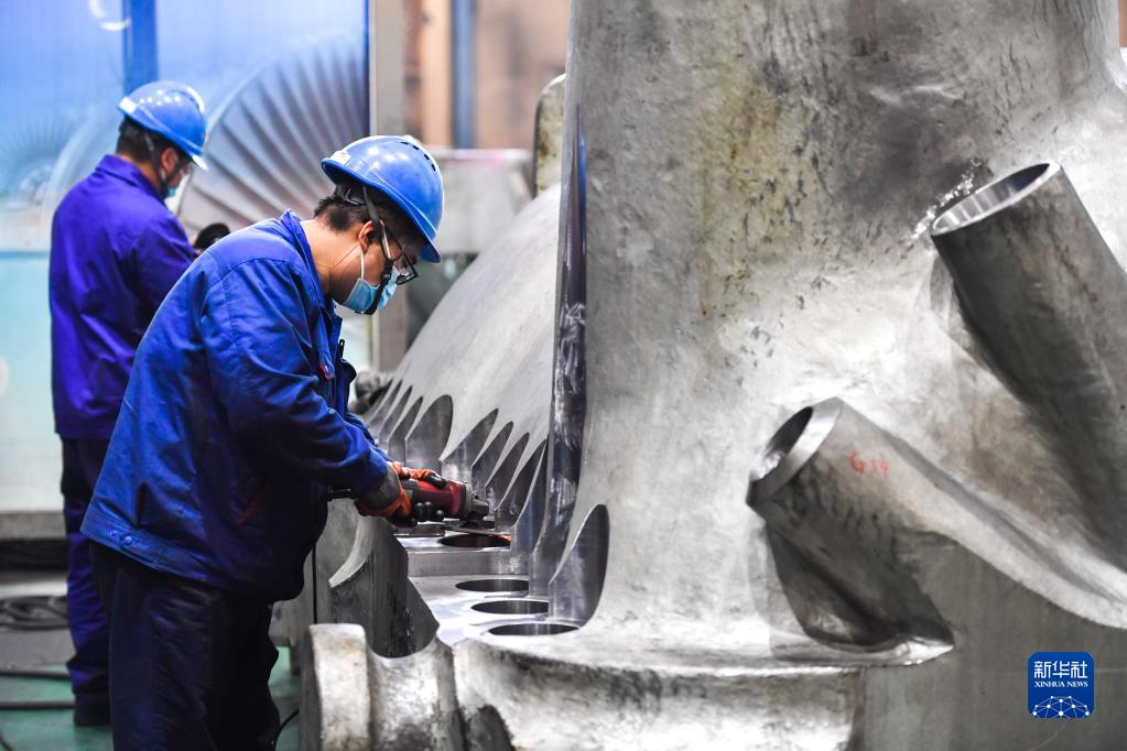 哈電集團哈爾濱汽輪機廠有限責任公司工人在生產車間作業(10月27日攝)。