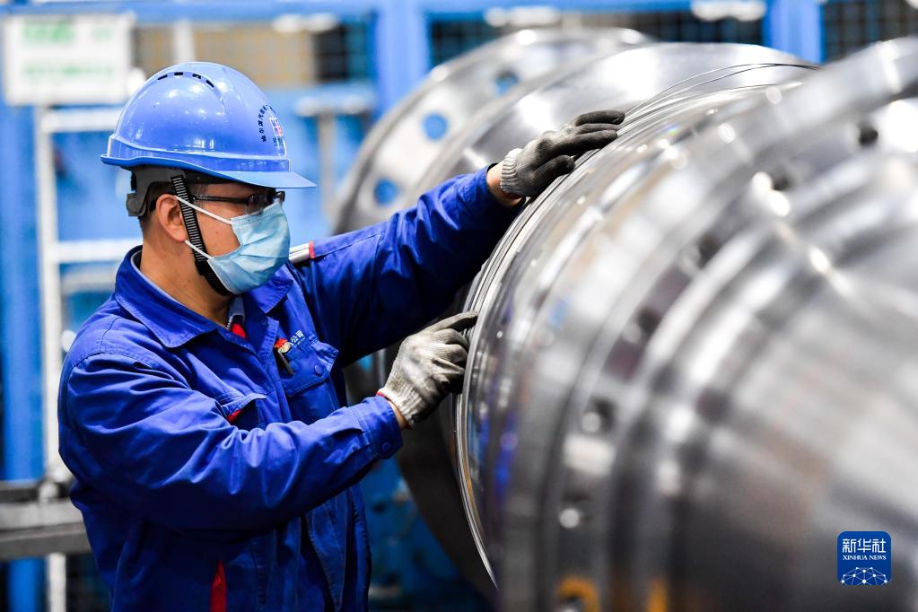 哈電集團哈爾濱汽輪機廠有限責任公司工人在生產車間作業(10月27日攝)。