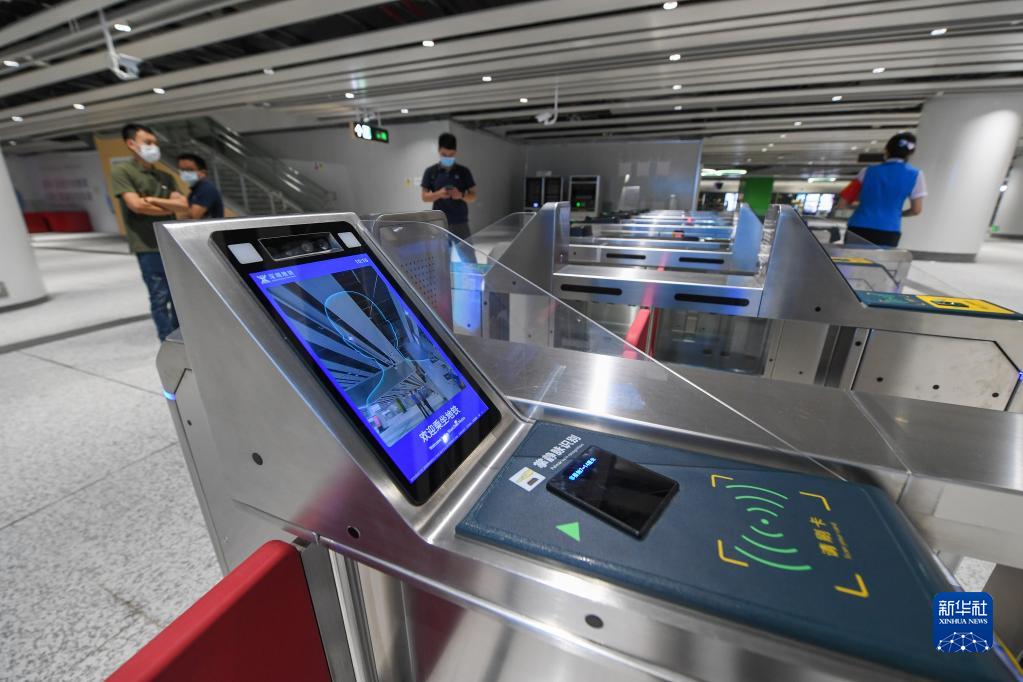這是10月28日在深圳地鐵黃木崗樞紐拍攝的可以實現人臉識別和掌靜脈識別的閘機。