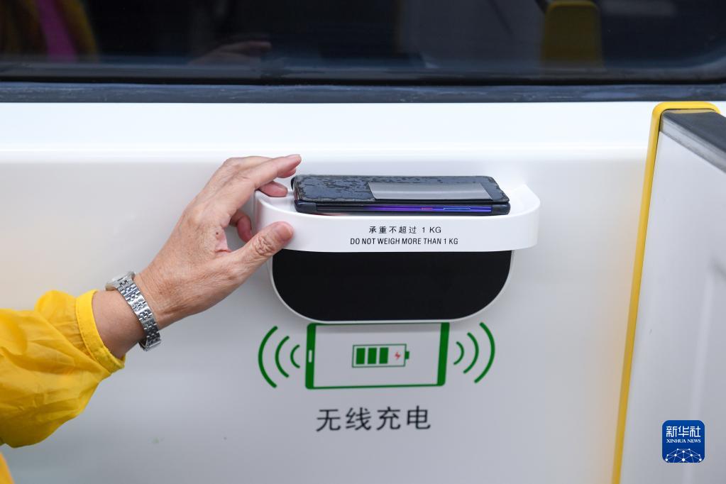 10月28日,市民體驗深圳地鐵14號線列車內的無線充電功能。