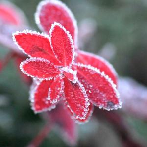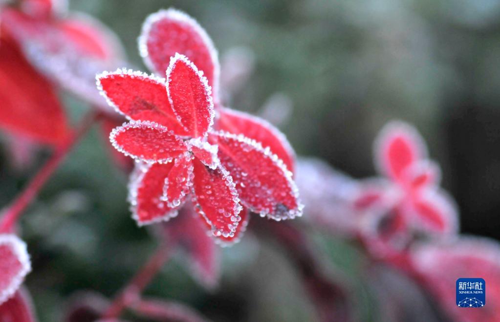 10月16日,在云南省迪慶藏族自治州香格里拉市建塘鎮,植物葉子上掛著白霜。