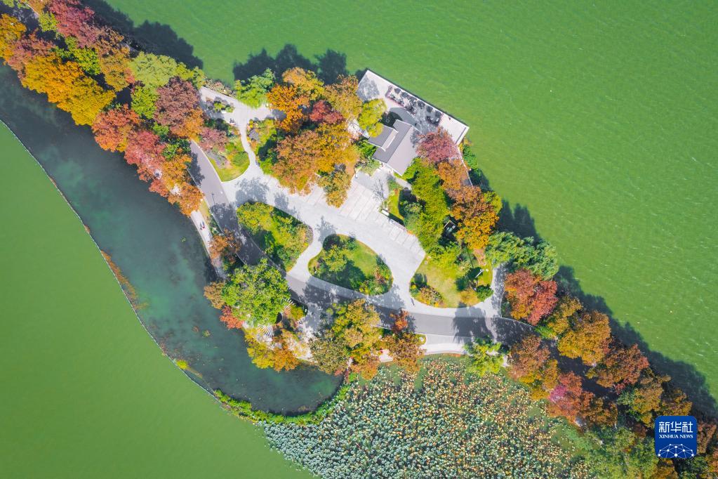 10月25日拍攝的江蘇省南京玄武湖公園秋景(無人機照片)。