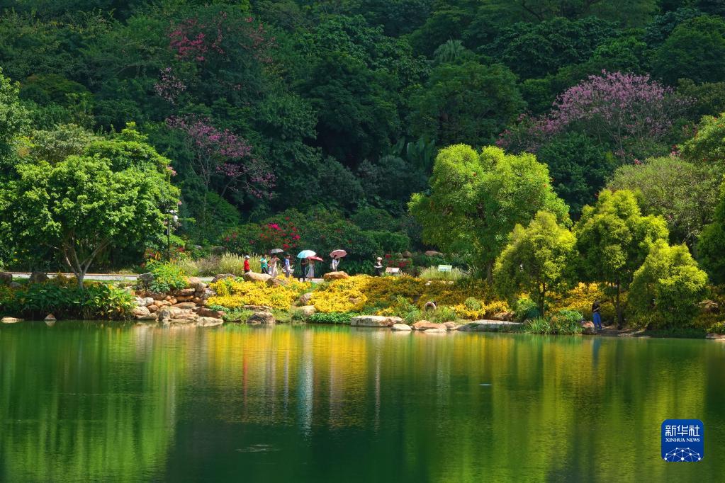 10月4日,市民在廣西南寧市青秀山公園的青山綠水間游玩。