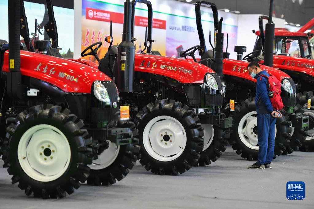 10月28日,參觀者在農業博覽會現場參觀農機裝備。