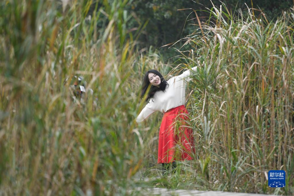游客在西溪濕地欣賞蘆花時留影(2019年11月3日攝)。