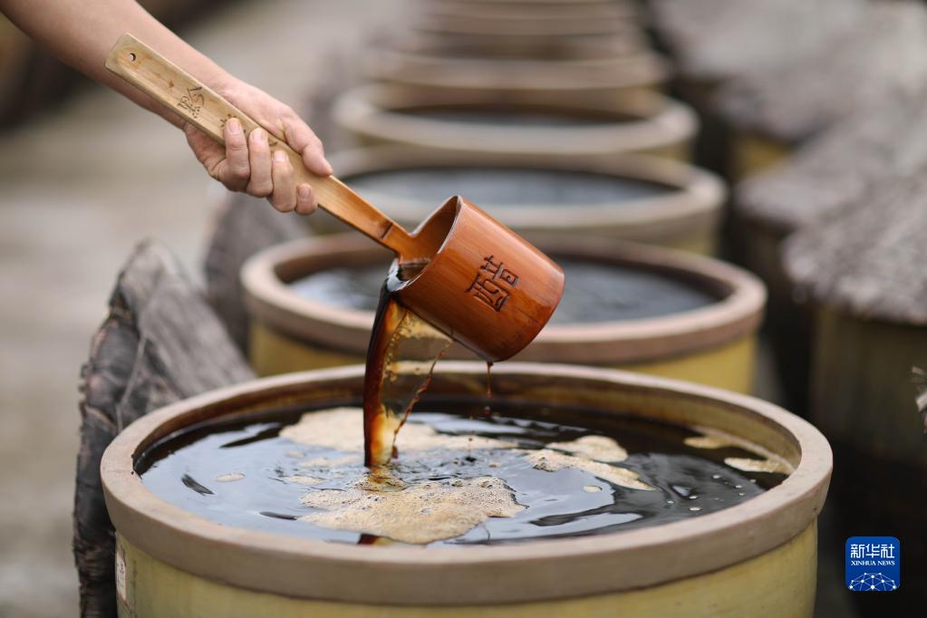 赤水曬醋以中藥制作醋曲,用大米、糯米等作原料,經過30多道工序制作而成,具有香、濃、酸、醇等特點,入口風味獨特,回味悠長。近年來,當地政府加大宣傳和保護力度,大力挖掘和培育鄉土人才傳承這項古老技藝,通過“線上+線下”展示和銷售,讓赤水曬醋這項古老技藝在大山里重新煥發生機。