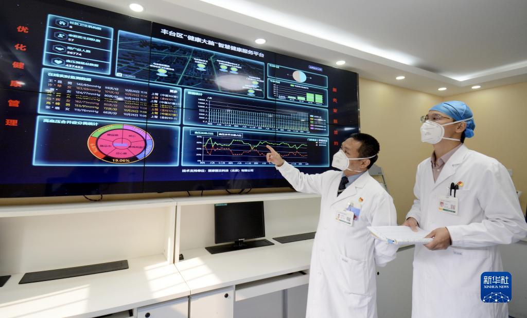 北京市豐臺區馬家堡社區衛生服務中心的醫生在應用“健康大腦”智能監測系統了解居民健康狀況(10月26日攝)。