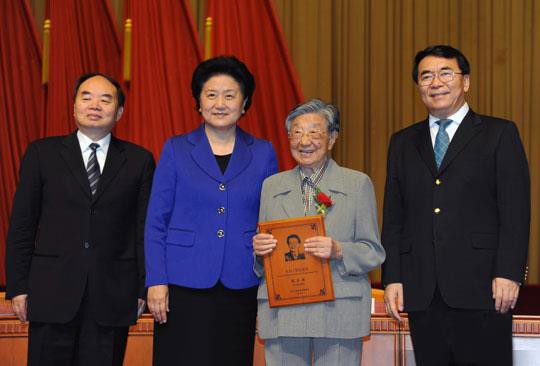 2014年6月,錢正英同志(右二)出席在北京舉行的中國科學院第十七次院士大會、中國工程院第十二次院士大會,榮獲第十屆光華工程科技獎成就獎。