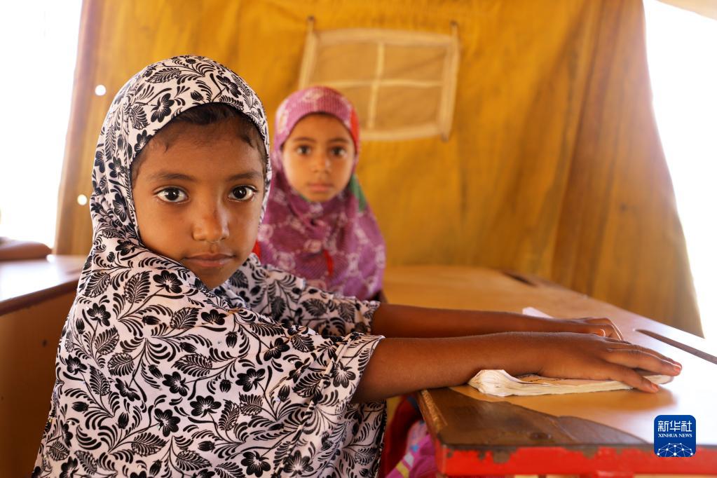 也門哈杰省一所學校的教室曾在戰火中被毀。在學生家長的幫助下,該校的師生搭建了11座帳篷、草屋和木板房,并在這些臨時教室中繼續學業。