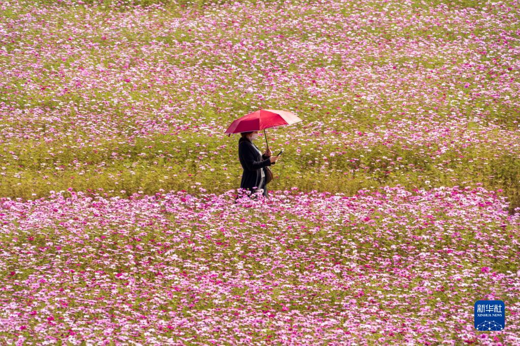 近日,韓國高陽市迎來賞花季,花田里盛開的大波斯菊吸引眾多游客前來觀看。