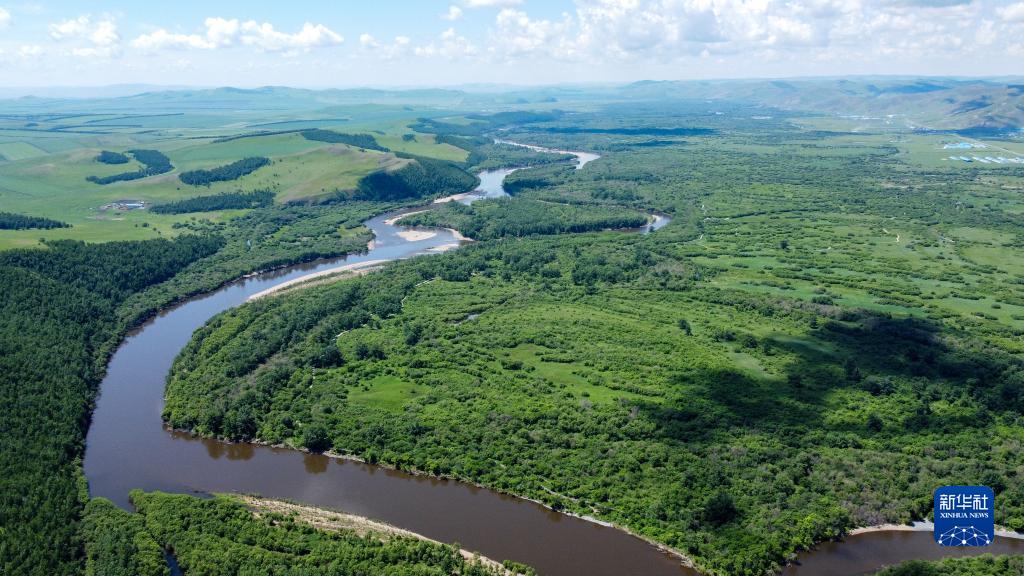 6月27日拍攝的額爾古納濕地風光(無人機照片)。