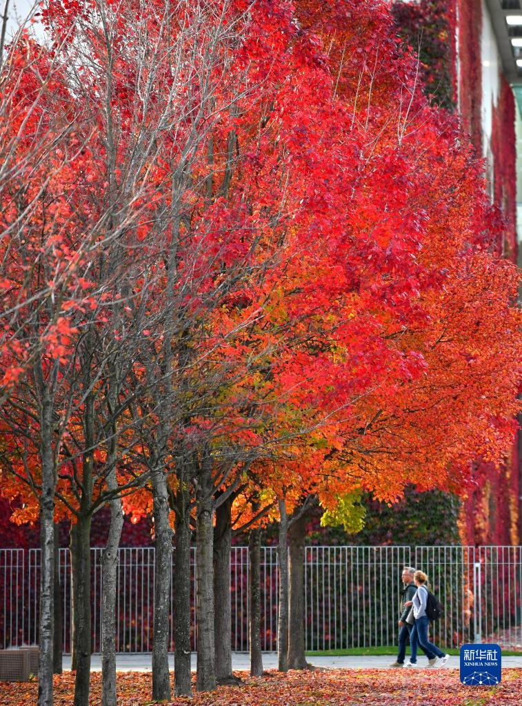 10月27日,在德國首都柏林,人們在街頭漫步。