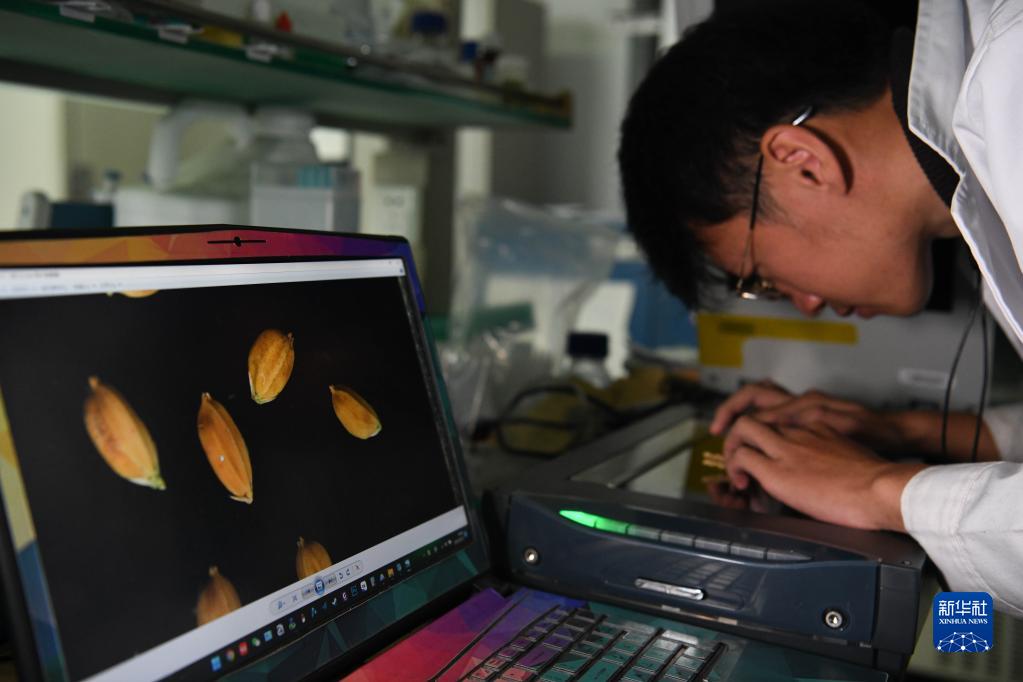 10月27日,在中科院合肥研究院智能所離子束生物工程與綠色農業研究中心,博士生姜鴻瑞對用于科研的水稻進行掃描。