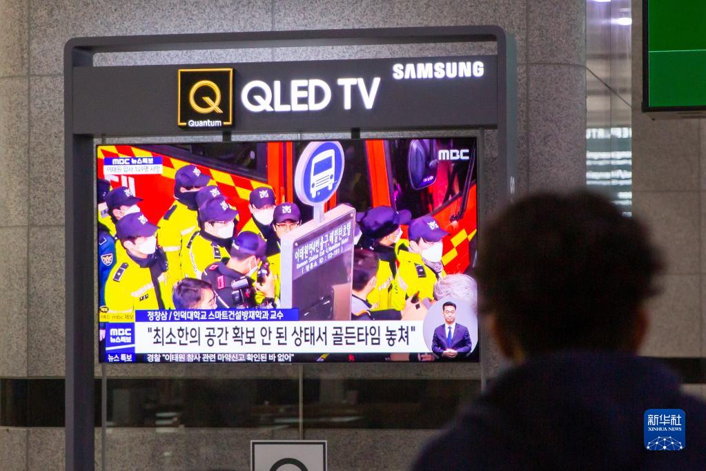 10月30日,在韓國慶尚北道慶州,車站的電視播放踩踏事故相關報道。