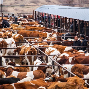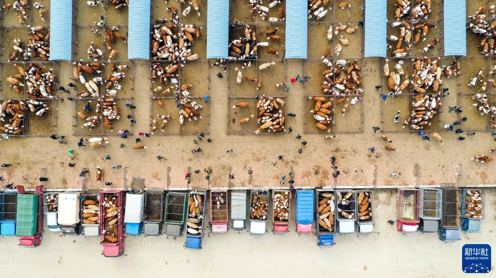 當日,內蒙古通遼市科爾沁左翼后旗伊胡塔牛市迎來交易日,來自遼寧、吉林、河北、山東等地的買家和經紀人云集牛市。伊胡塔牛市年交易牛頭數超50萬頭,交易日均成交5000余頭,年交易額超50億元。近年來,在做好疫情防控的前提下,當地穩步發展肉牛產業,養牛已經成為當地農牧民增收致富的主要途徑之一。