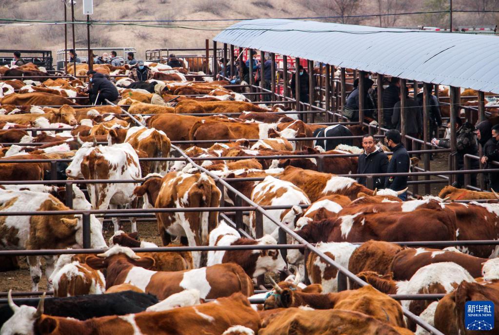 當日,內蒙古通遼市科爾沁左翼后旗伊胡塔牛市迎來交易日,來自遼寧、吉林、河北、山東等地的買家和經紀人云集牛市。伊胡塔牛市年交易牛頭數超50萬頭,交易日均成交5000余頭,年交易額超50億元。近年來,在做好疫情防控的前提下,當地穩步發展肉牛產業,養牛已經成為當地農牧民增收致富的主要途徑之一。
